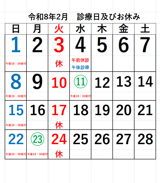 お知らせ 令和8年2月の診療日